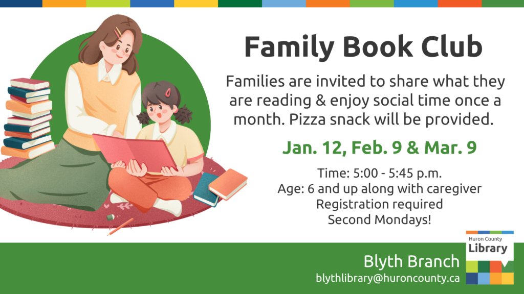 The Bayfield Book Club is currently full. Contact the branch at 519-565-2886 or email bayfield@huroncounty.ca to add your name to the waitlist.