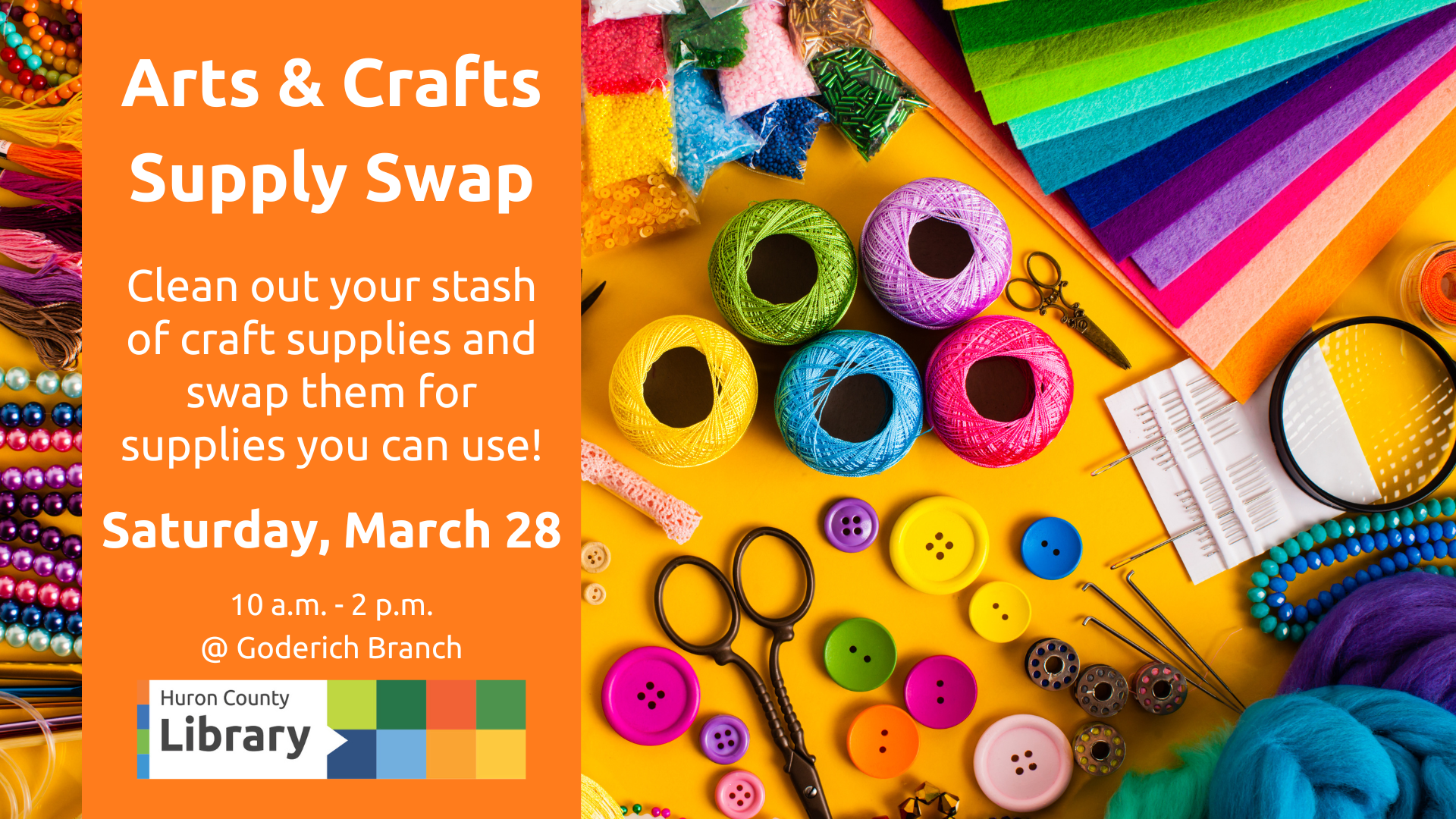 Arts and Craft Supply Swap – Goderich Branch Mar 28 Featured 10:00 am - 2:00 pm Arts and Craft Supply Swap – Goderich Branch