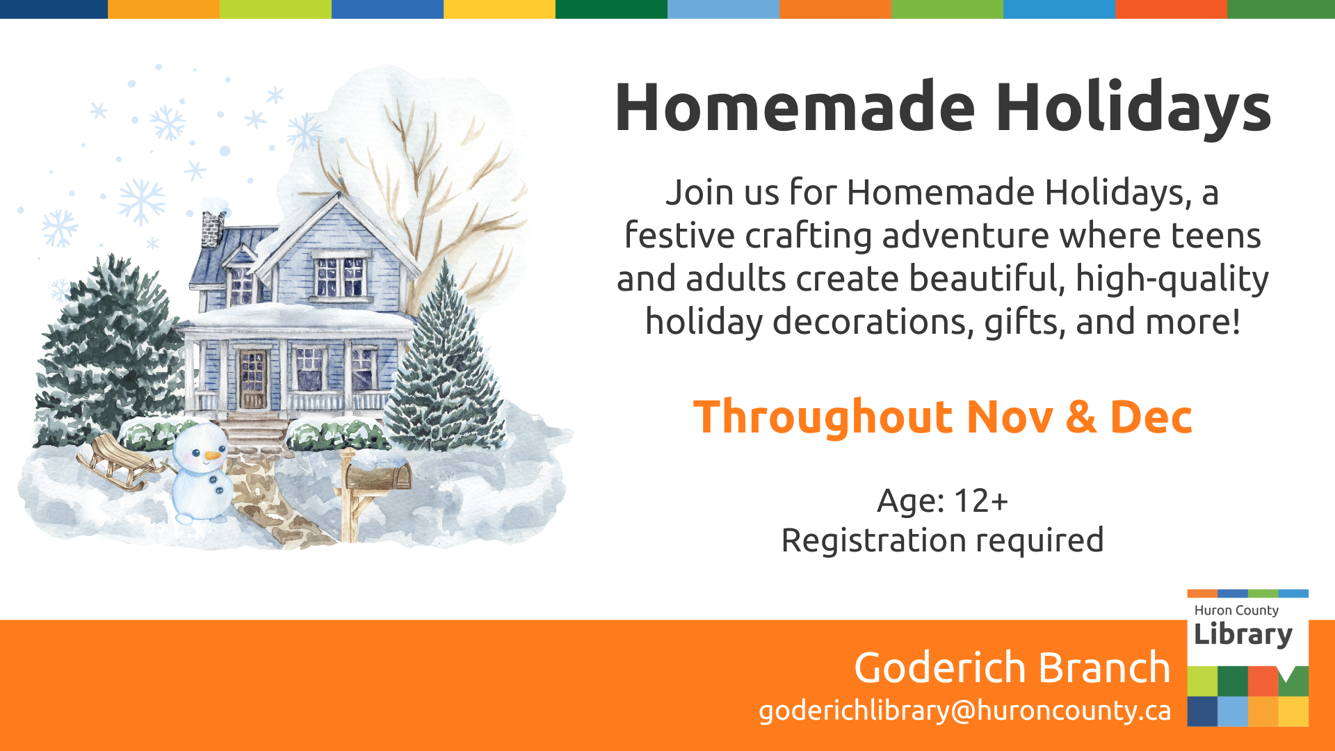 Join us at the Goderich Library for Homemade Holidays, a festive crafting adventure where teens and adults create beautiful, high-quality holiday decorations, gifts, and more! You'll master various techniques and leave each workshop with stunning, handcrafted pieces that bring warmth and joy to the holiday season.